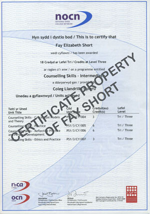 Practitioner Certificate in Counselling Skills 2007-2008: Coleg Llandrillo Modules Ethics in Practice Reflective Practice and Personal Development Counselling Conceptual Models and Theory